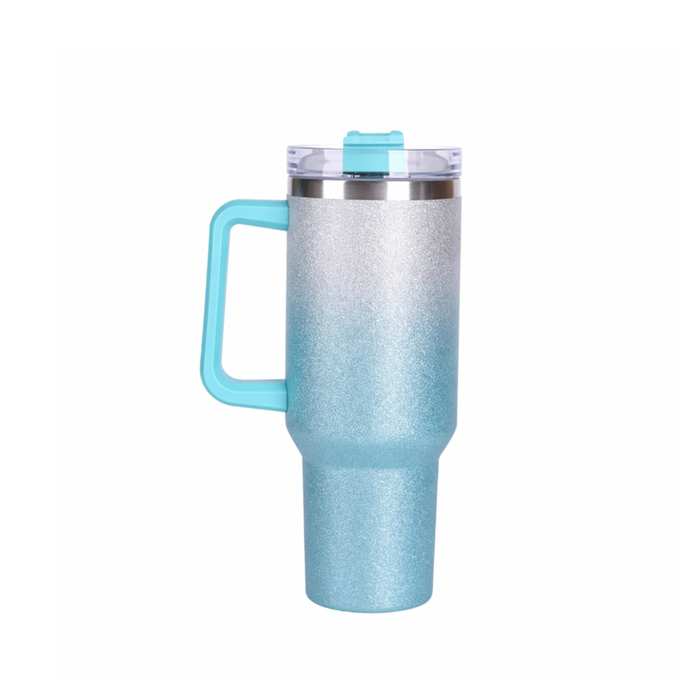 (1.2L) Edelstahl Thermo Kaffee Becher Doppelwandiger Trinkbecher Glitzer Thermoskanne mit Deckel + Strohhalm - Türkis