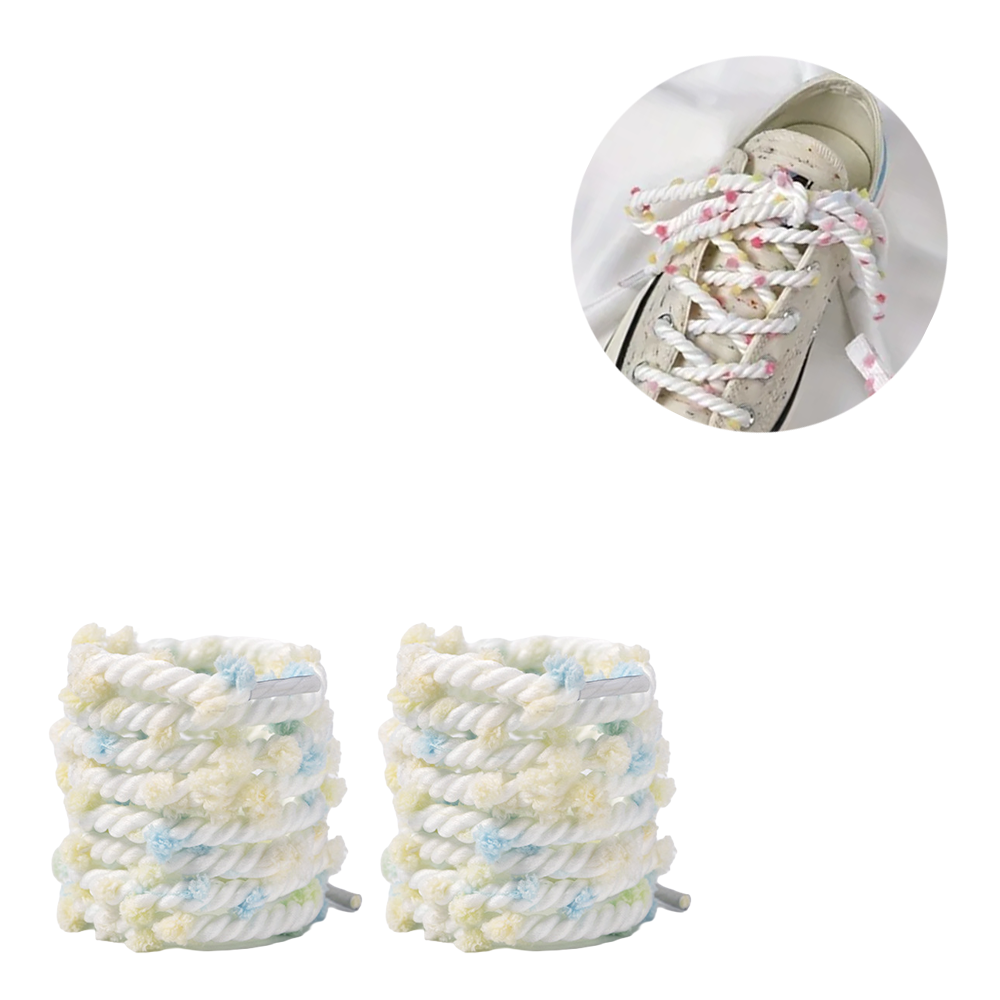 Diese runden Schnürsenkel mit Pompon Punkten verwandelst du jedes Paar Schuhe in ein stylisches Statement. Die fröhlichen Akzente setzen modische Highlights und machen deine Schuhe garantiert zum Blickfang. Perfekt für alle, die ihren Fashion Style zeigen wollen und Wert auf kreative Kordel Schuhbändel legen!