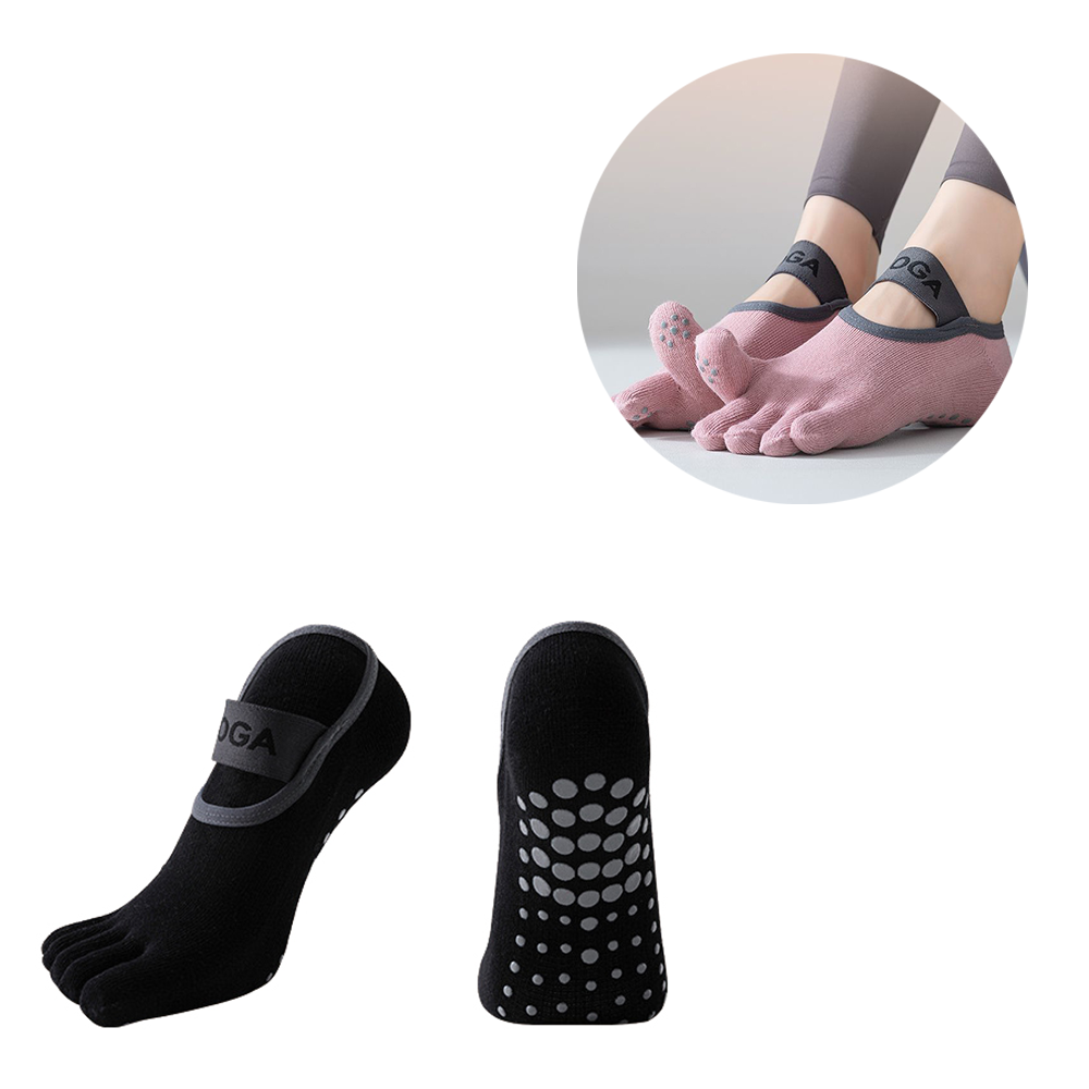 (1 Paar) Anti-Rutsch Baumwoll Zehentrenner Pilates Yoga Sport Socken (One Size) - Schwarz