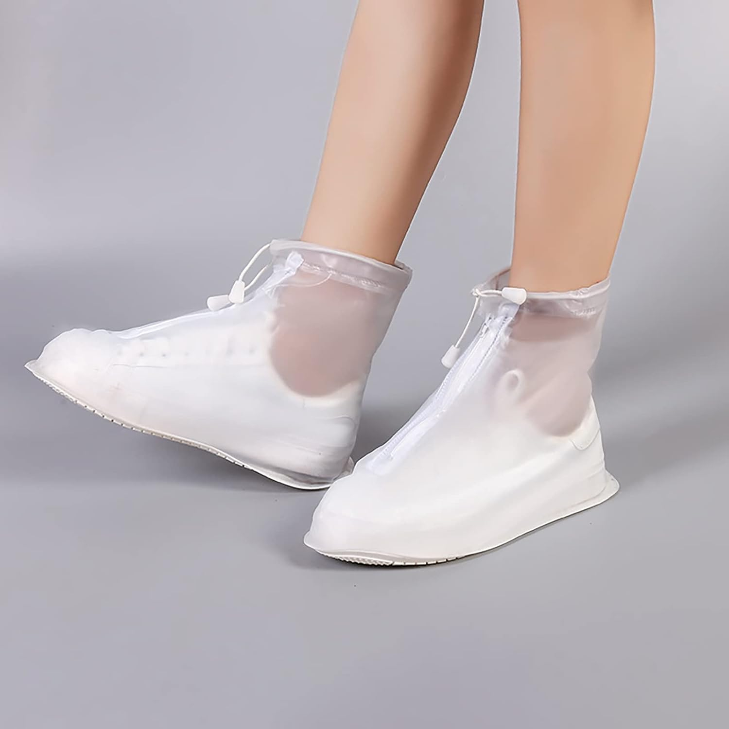 (1 Paar) Gr. 41-42 Wiederverwendbare Schuhabdeckung Outdoor Schuhüberzug Wasserabweisend mit Reissverschluss - Transparent
