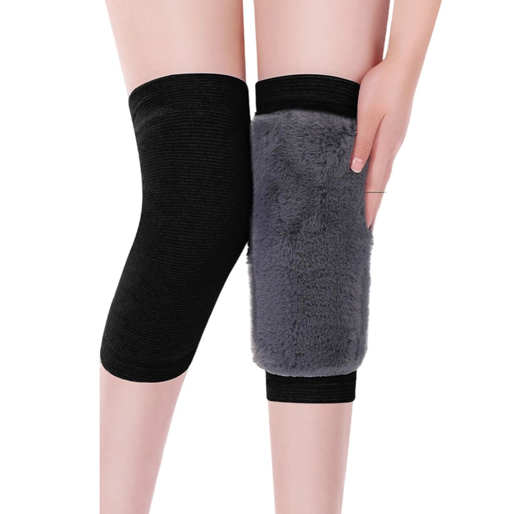 (1 Paar) Gr. M Winter Knie Wärmer Gefütterte Kniebandage Kunstfell - Schwarz