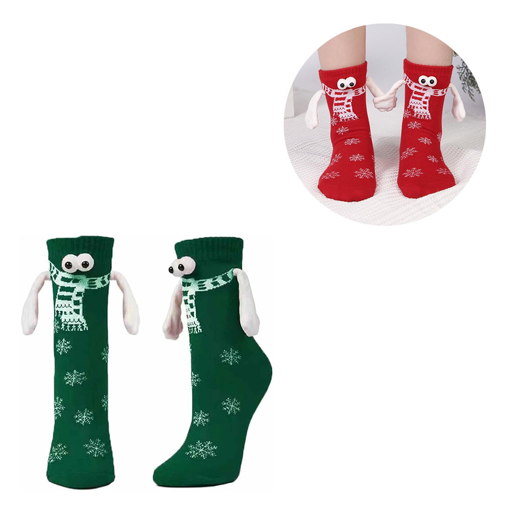 (1 Paar) Unisex Socken Weihnachts Fashion Strümpfe Couple Socks Füsslinge mit Magnetischen Händen (One Size) - Grün