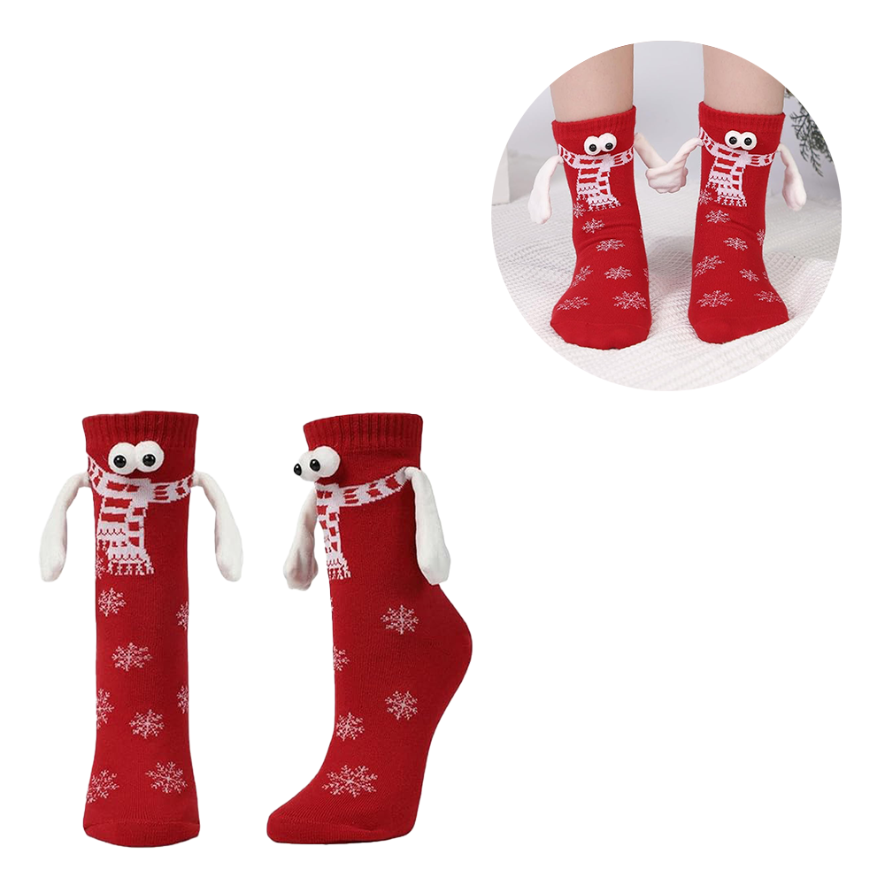 (1 Paar) Unisex Socken Weihnachts Fashion Strümpfe Couple Socks Füsslinge mit Magnetischen Händen (One Size) - Rot