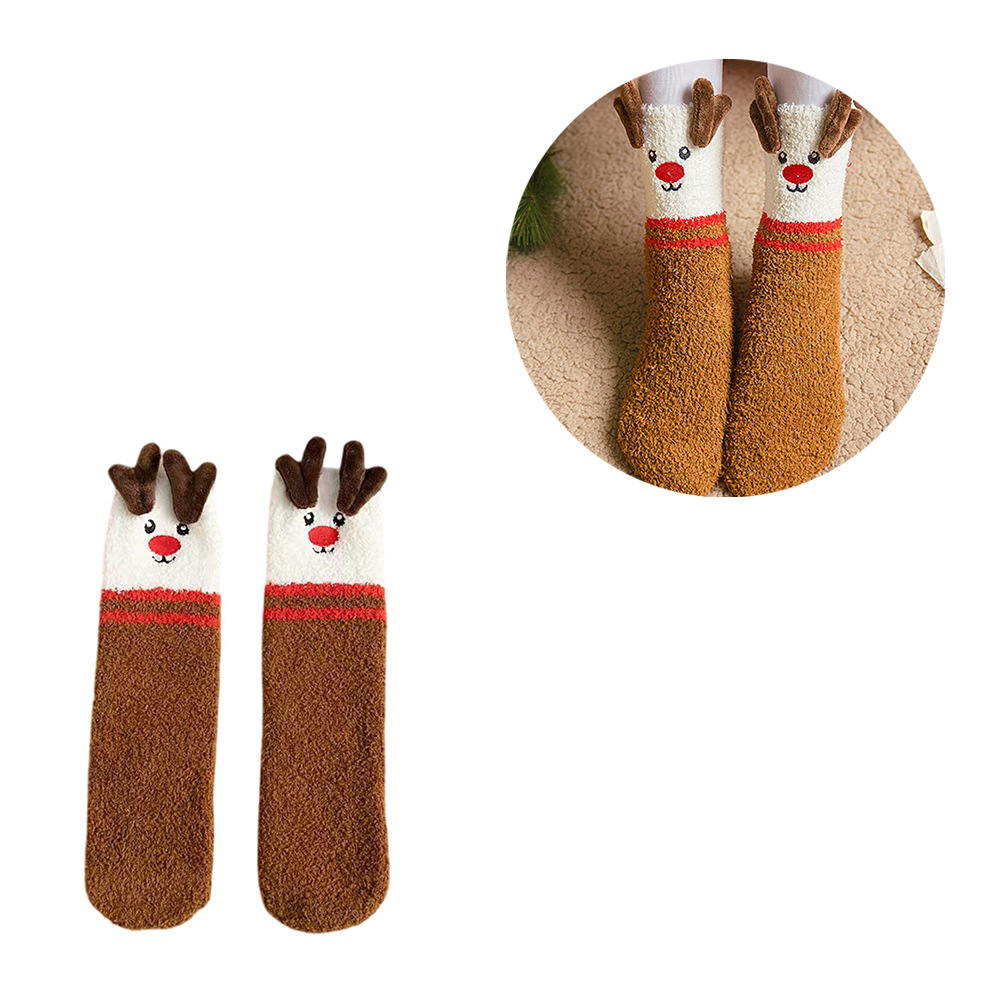 (1 Paar) Weihnachts Kuschel Socken Wintersocken Christmas Füsslinge Flauschige Bettsocken (One Size) - Rentier