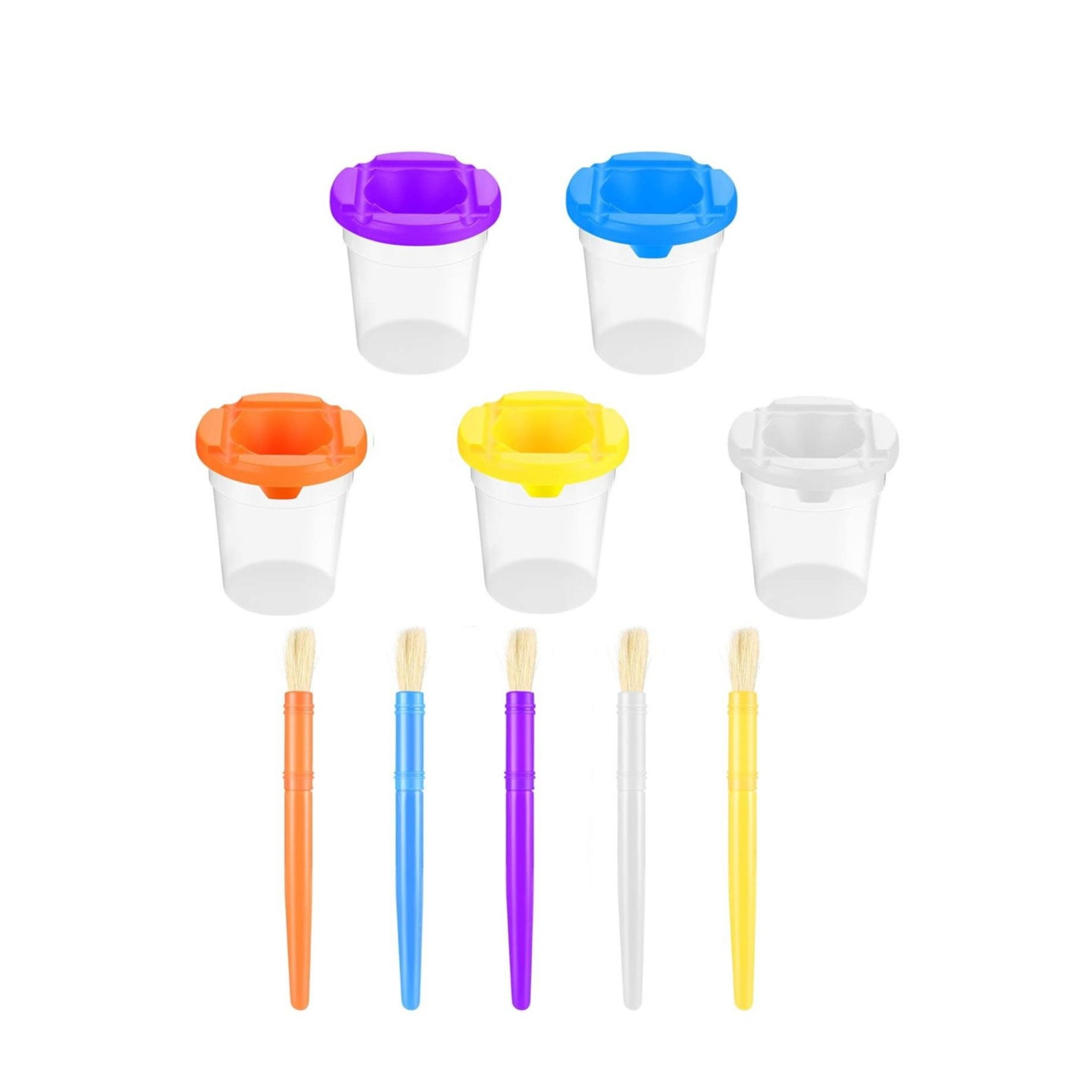 (10-tlg. Set) Auslaufsichere Pinselhalter Wasser Becher Kinder Pinsel DIY Kunst Werkzeug Wasserfarben Malpinsel - Bunt