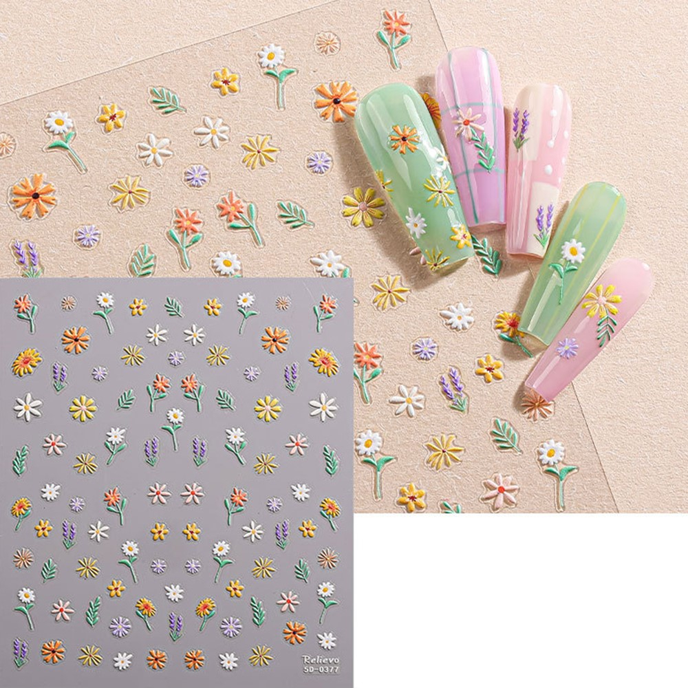 (100-tlg. Set) 5D Nagel Sticker Nail Art Tattoo Selbstklebende Aufkleber Blumen - Bunt