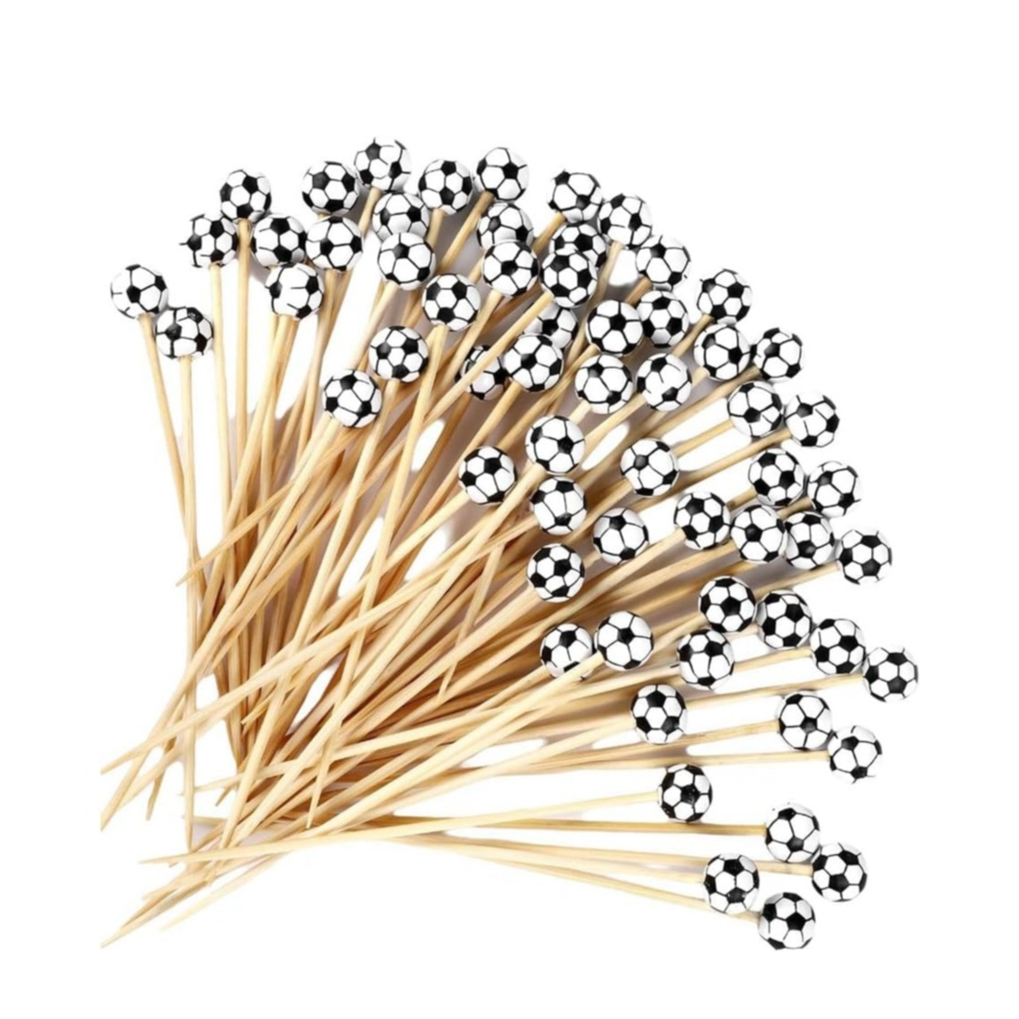 (100er Set) 12cm Holz Cocktail Sticks Fingerfood Motto Party Spiesse Deko Zahnstocher - Fussball