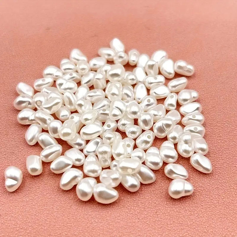 (100er Set) 6x9mm Schimmernde Perlen DIY Bastel Schmuck Zwischenperle im Perlmutt Optik für Armband / Kette - Weiss