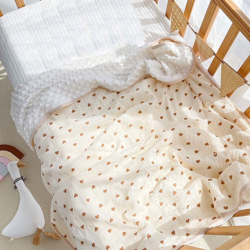 (106x95cm) Baumwoll Baby Bettdecke Kinder Musselin Kuschel Tuch - Herz