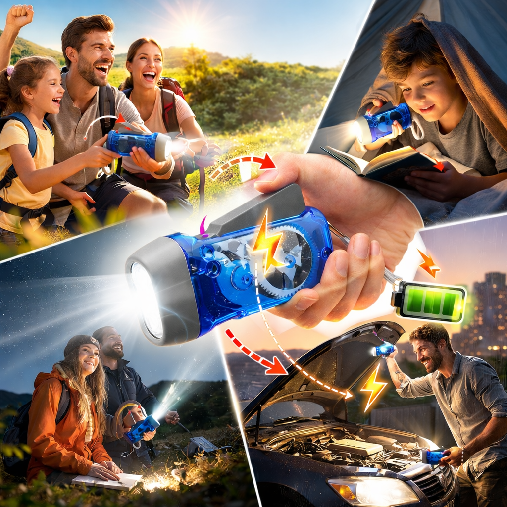 Ob beim Camping, Wandern oder im Notfall – mit dieser LED Taschenlampe hast du immer Licht, ganz ohne Batterien. Durch einfaches Kurbeln erzeugt der Dynamo Energie, die sofort für helles LED-Licht sorgt. So bist du unabhängig von Stromquellen und immer bestens vorbereitet.