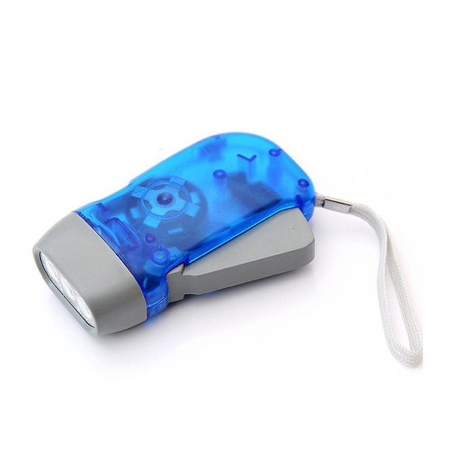 (10cm) LED Dynamo Taschenlampe Licht Handkurbel Lampe mit Handgelenk Schlaufe - Blau / Grau