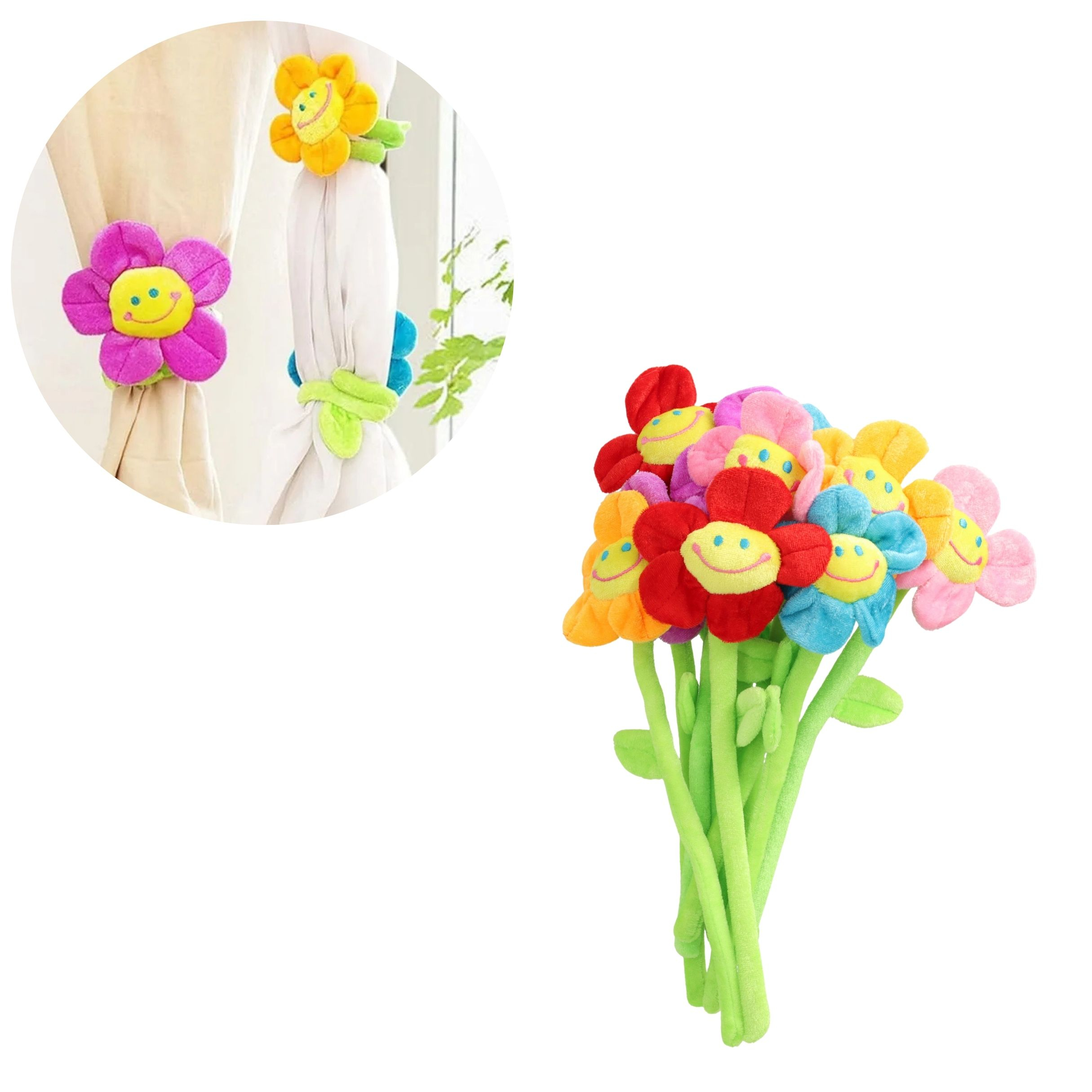 (10er Set) 30cm Plüsch Vorhang Raffhalter Binder Kinderzimmer Deko Biegbare Gardinenhalter - Blumen
