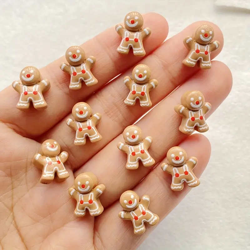 (10er Set) 8x6mm Miniatur Weihnachts Deko Mini Gingerbread Party Tischdekoration Bastel Zubehör für Kreative DIY Projekte - Lebkuchenmann