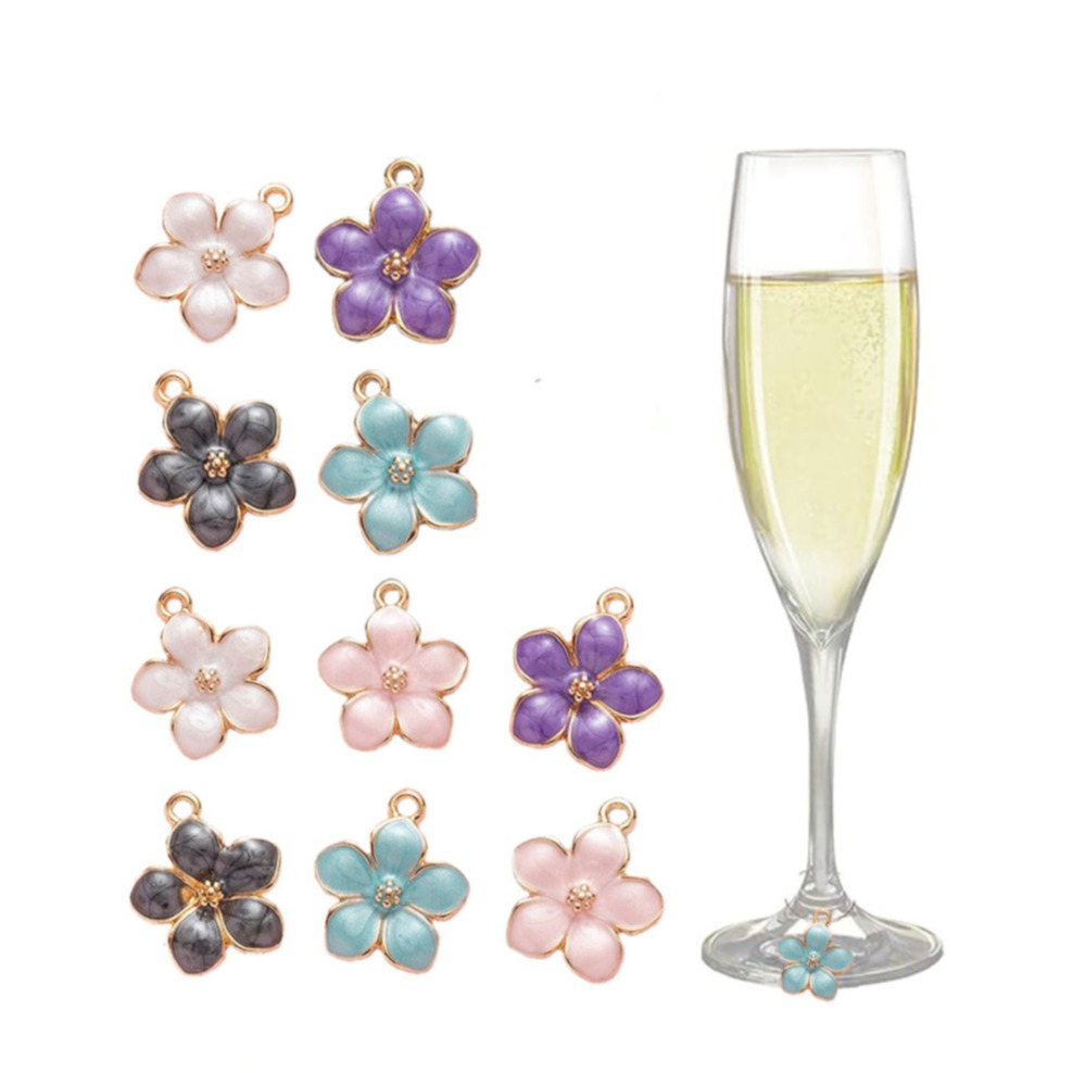 (10er Set) Glas Markierer Wiederverwendbare Trinkglas Blumen Charms Markierungs Anhänger inkl. Aufbewahrungs Beutel - Bunt