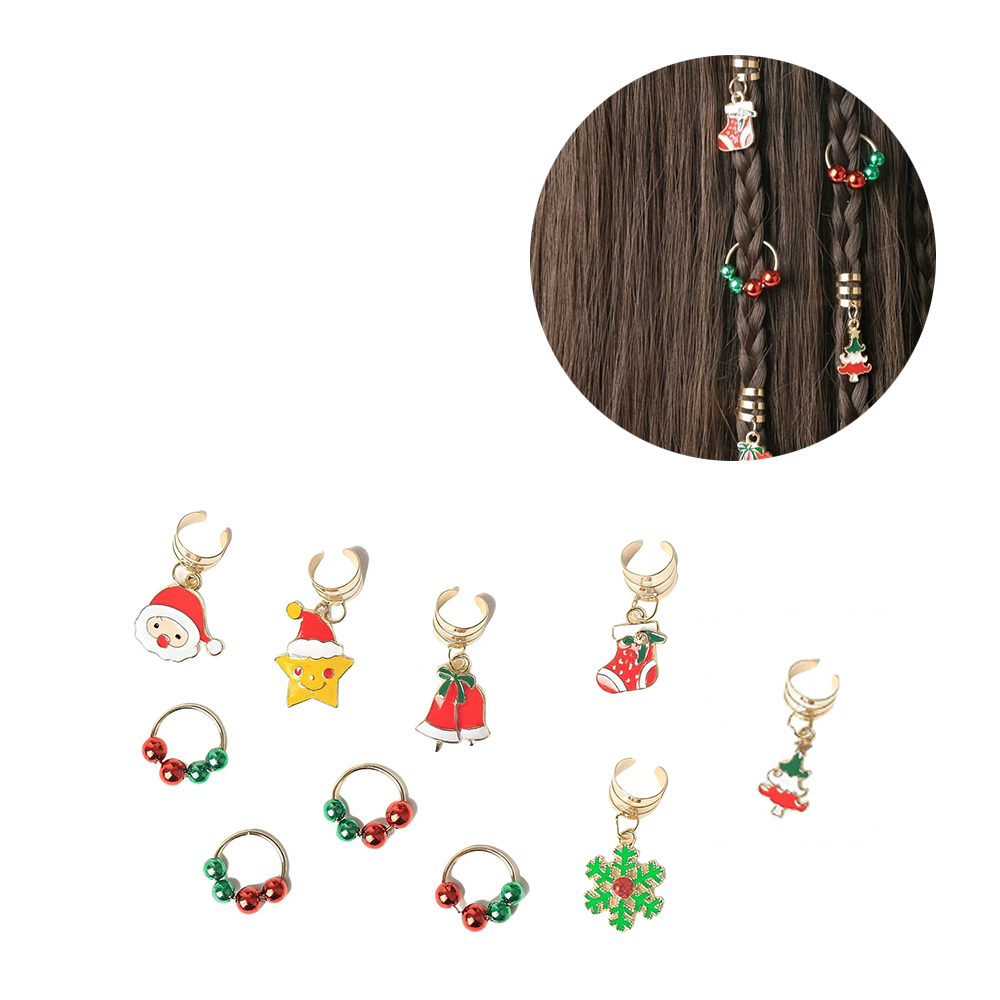 (10er Set) Haar Schmuck Weihnachts Accessoire Dreadlock Zopf Clips mit Anhänger - Grün / Rot