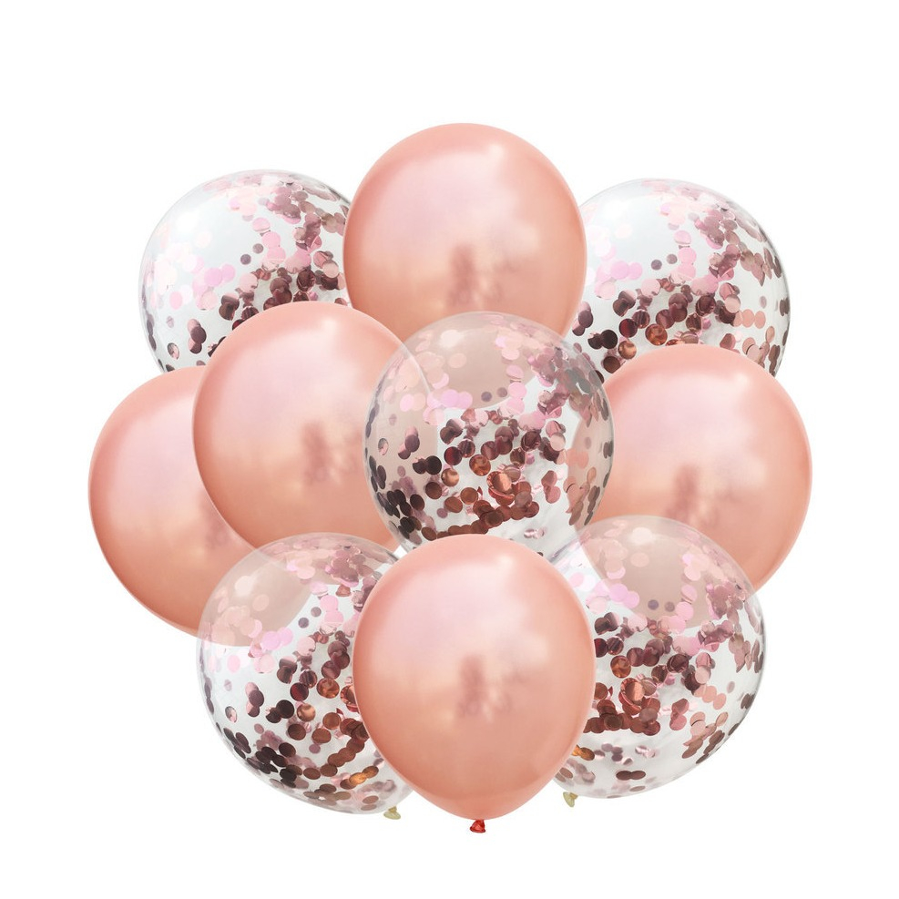 (10er Set) Ø30cm Party Deko Ballons Latex Luftballons mit Konfetti - Rosa / Roségold
