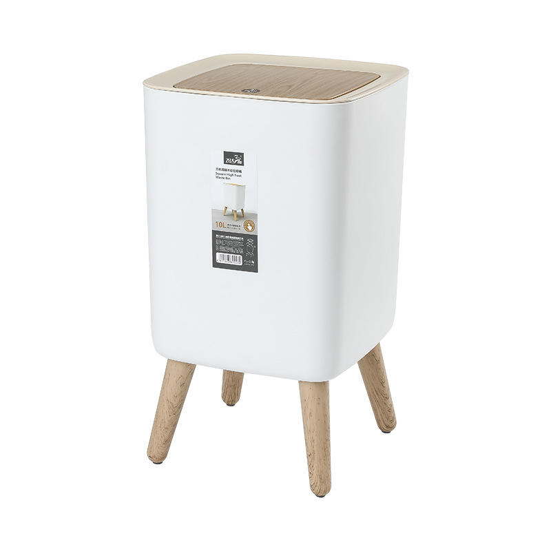 (10l) Deko Mülleimer Abfall Behälter mit Press Top Deckel + Standfüsse für Badezimmer / Küche / Büro - Weiss / Braun