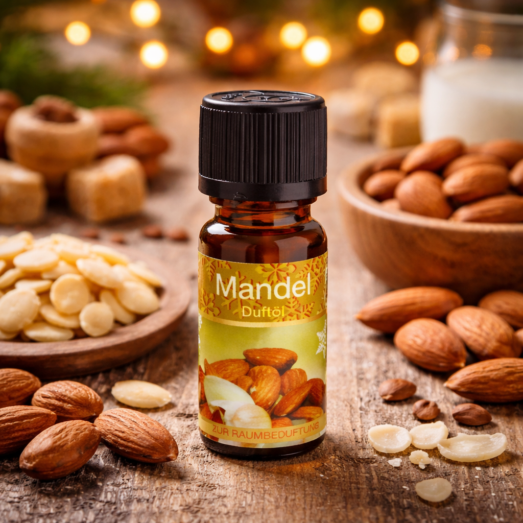 Erlebe die Magie der Weihnachtszeit mit dem Aroma Duftöl „Mandel“ von Elina. Der Duft erinnert an gemütliche Abende im Kerzenschein und schafft eine behagliche Wohlfühlatmosphäre. Ob im Diffuser, in der Duftlampe oder auf Duftsteinen, schon wenige Tropfen erfüllen den Raum mit einem angenehmen, festlichen Aroma. Das Duftöl sorgt für Ruhe, Wärme und Entspannung, perfekt für die kalte Jahreszeit oder stimmungsvolle Momente in der Adventszeit.