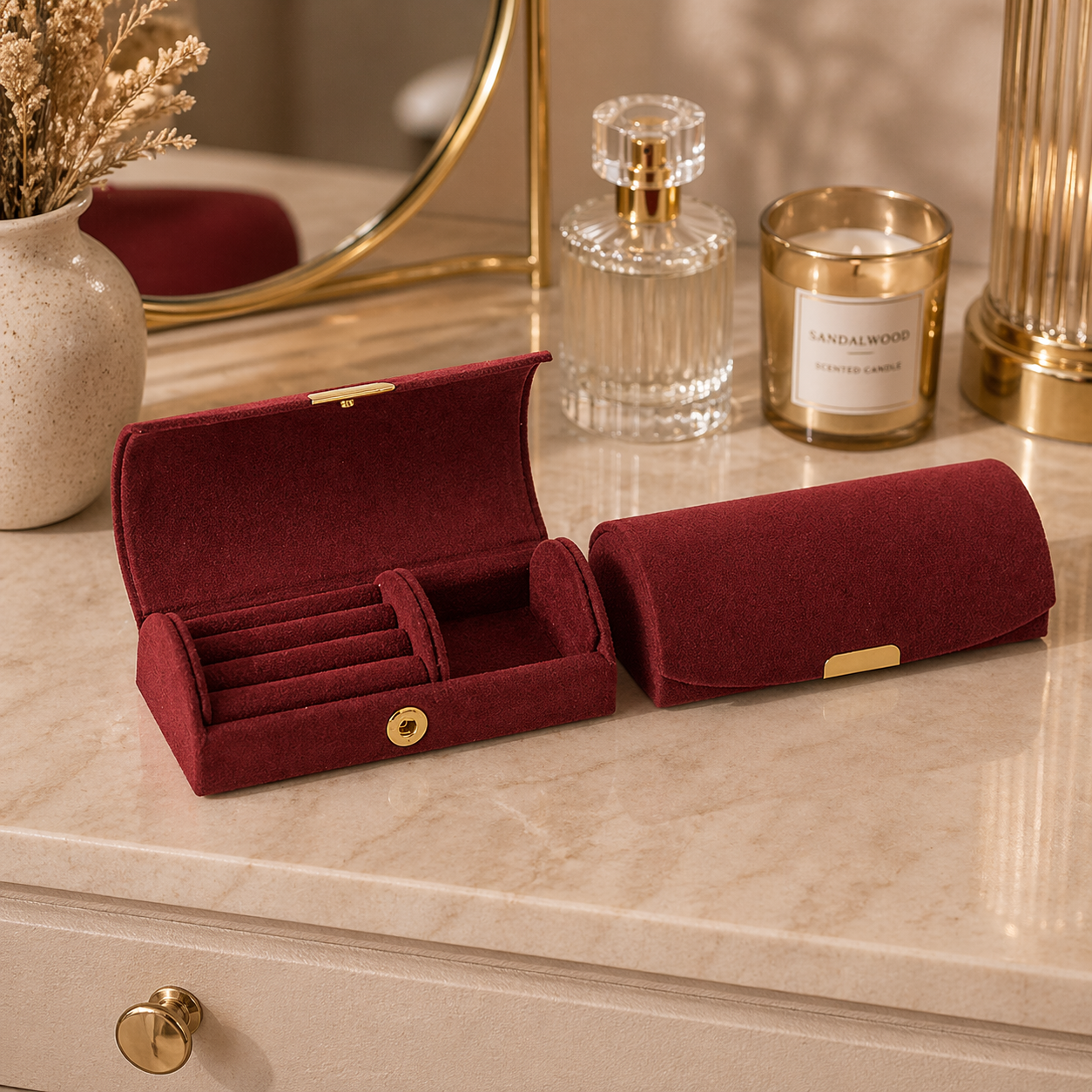(10x5cm) Samt Ringschatulle Schmuck Organizer Box für Ringe / Halskette / Ohrringe - Rot
