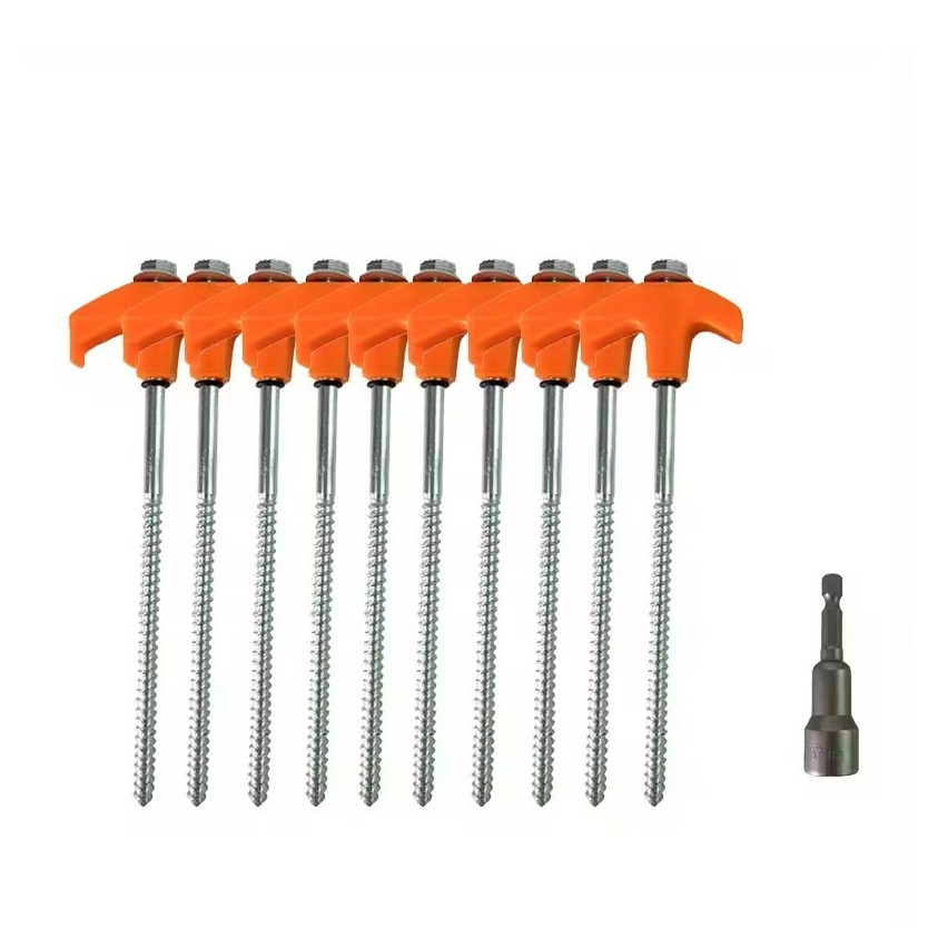 (11-tlg. Set) 20cm Zelt Schraub Hering Outdoor Camping Erdnagel mit Adapter - Orange