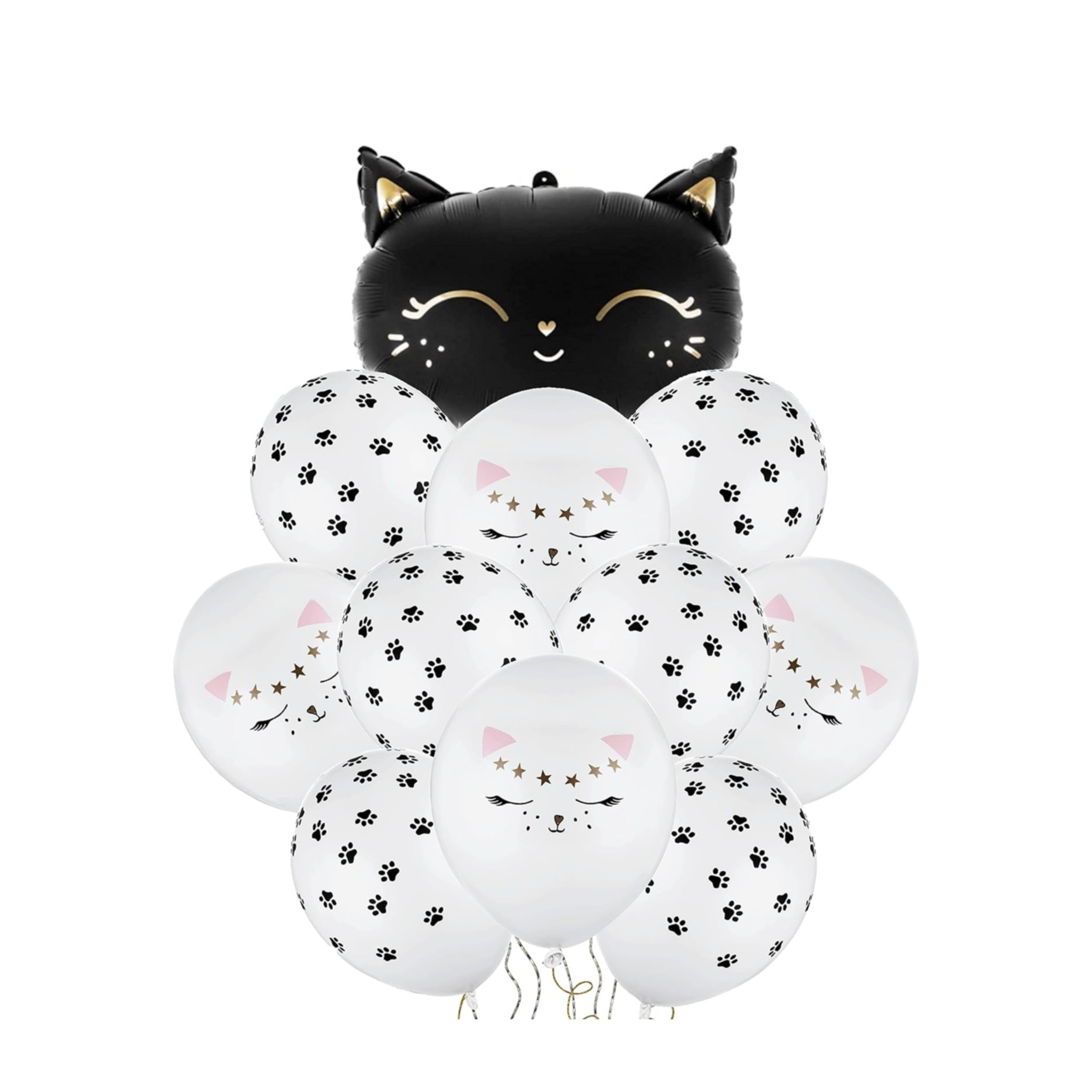(11-tlg. Set) Katze Latex- und Folien Ballon Party Deko Tatze Luftballon - Schwarz / Weiss