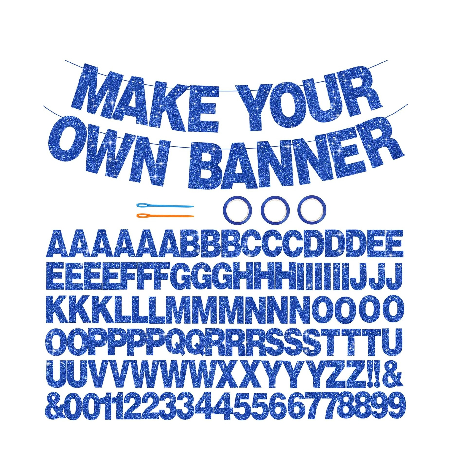 (114-tlg. Set) Glitzer Buchstaben Zahlen Girlande DIY Partydeko Accessoire Banner - Blau