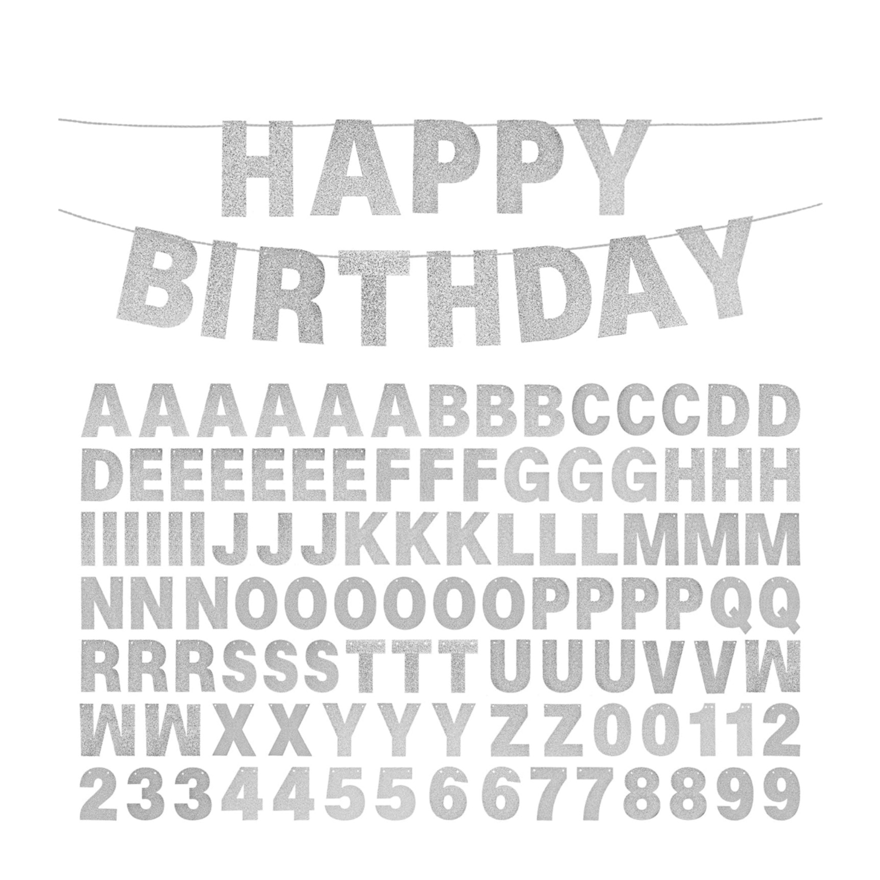 (114-tlg. Set) Glitzer Buchstaben Zahlen Girlande DIY Partydeko Accessoire Banner - Silber