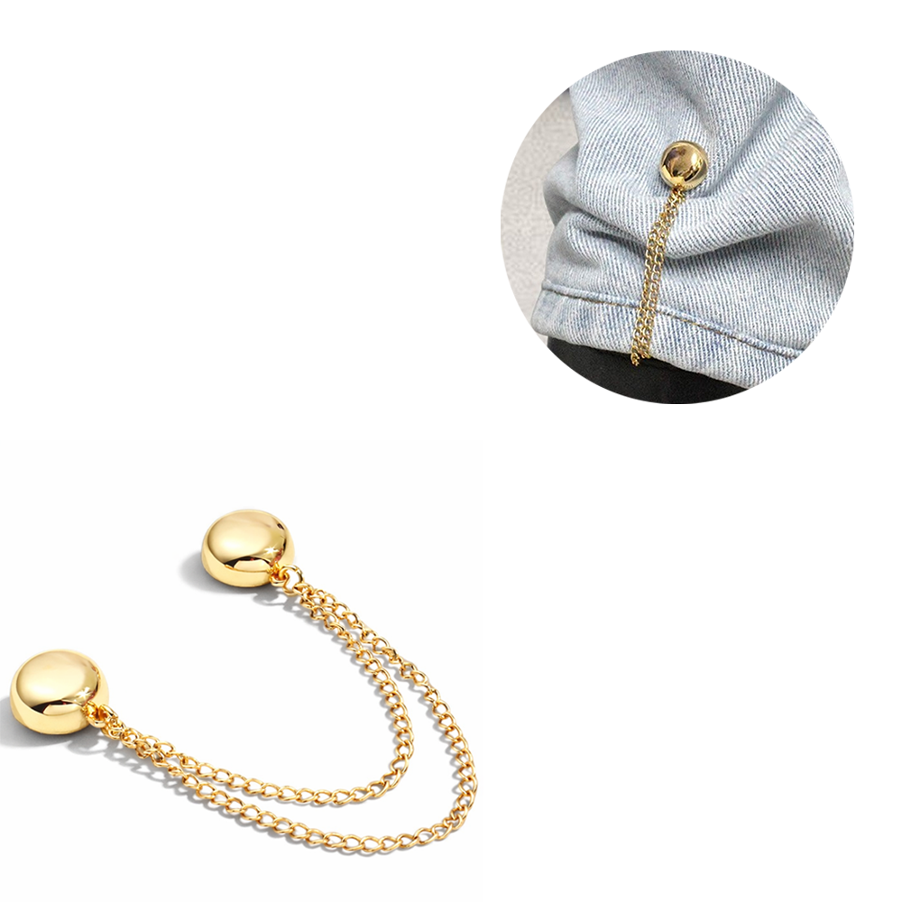 Mit diesem Kleidungs Clip sorgst du für sicheren Halt bei deinem Outfit. Die magnetische Technik bietet eine einfache und zuverlässige Möglichkeit, deine Hosen, Hemd oder Bluse zu fixieren, ohne Nadel oder Naht. Die goldene Farbe verleiht dem Clip zusätzlich einen eleganten Look, während die Kette für eine bequeme Anwendung sorgt. Diese Fixier Pin sind bestens für unterwegs oder bei besonderen Anlässen!