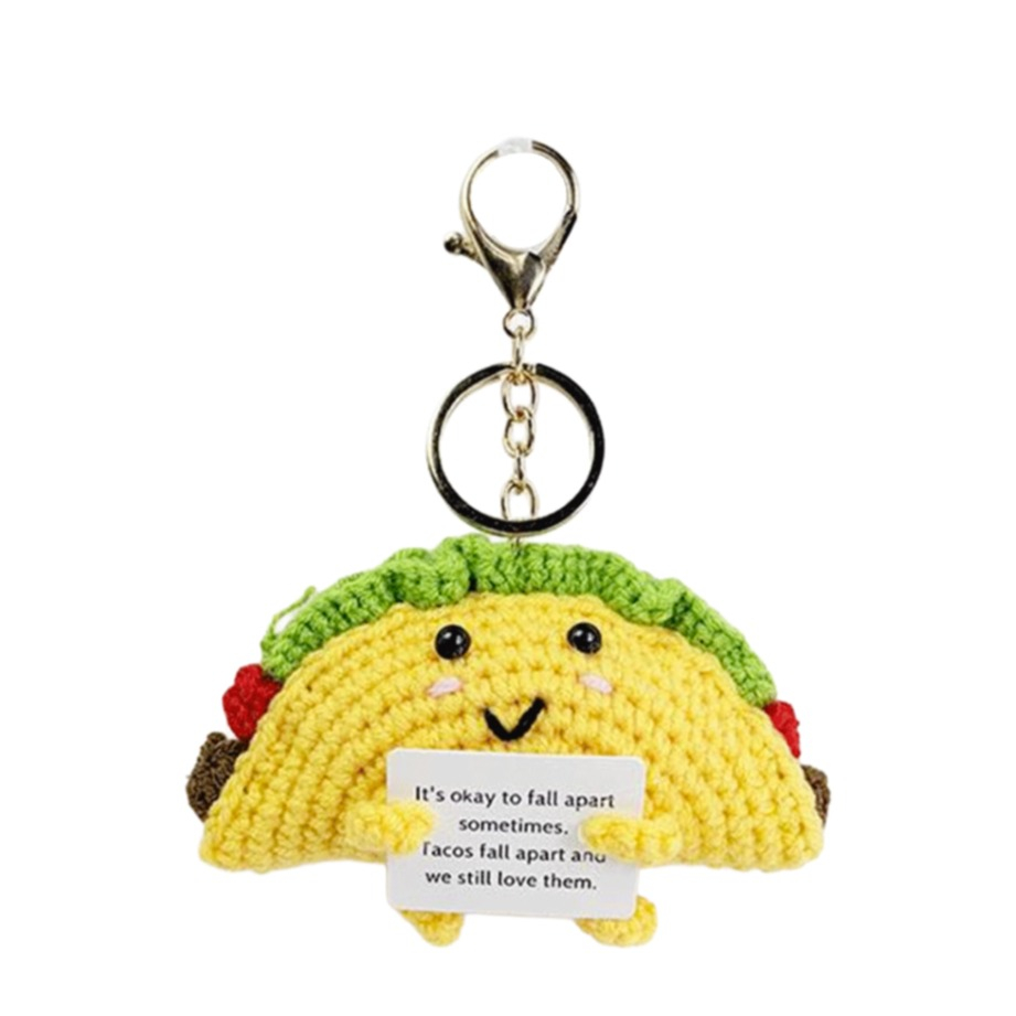 (11x7cm) Positive Taco Gehäkelter Schlüsselanhänger Mini Glücksbringer Plüschtier Tortilla Anhänger Geschenkidee - Gelb
