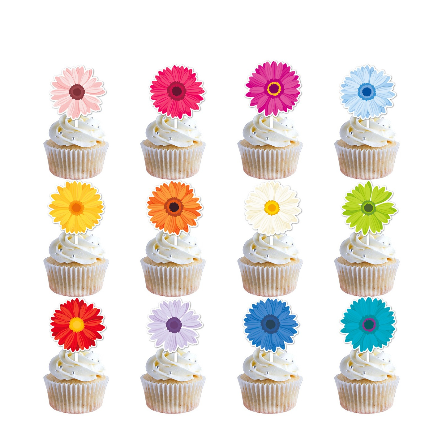 (12-tlg. Set) Kuchenstecker Blumen Tortenstecker Party Deko Topper für Torten / Kuchen - Bunt