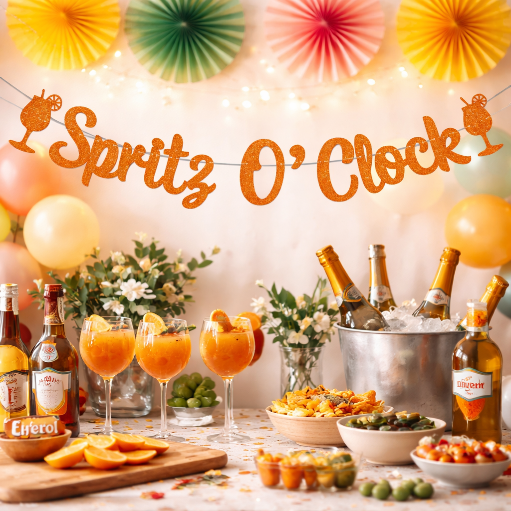 Mit dieser Spritz O'Clock Aperol Girlande setzt du ein klares Statement auf deiner nächsten Party. Das auffällige Design kombiniert kräftige Farben mit funkelndem Glitzer und sorgt sofort für ausgelassene Stimmung. Egal ob Geburtstag, Junggesellenabschied oder Motto Party – dieses Party Deko Banner wird garantiert zum Highlight deiner Dekoration.