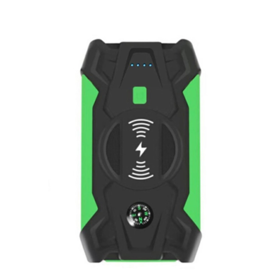 12000mAh Powerbank mit Jumpstart Power Starter Funktion Dual USB A und Qi Wireless + Auto Starthilfe Überbrückungskabel / LED Taschenlampe / Kompass - Grün / Schwarz