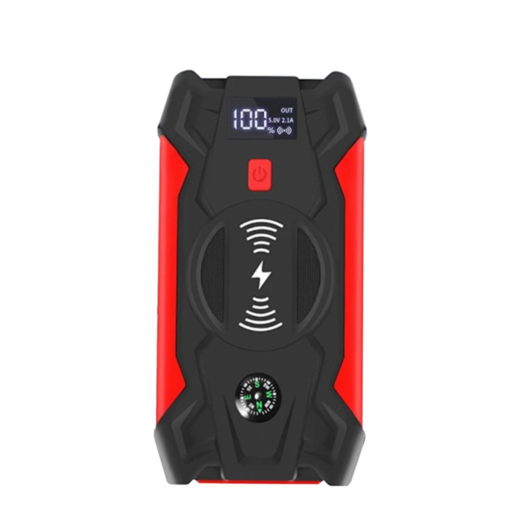 12000mAh Powerbank mit Jumpstart Power Starter Funktion Dual USB A und Qi Wireless + Auto Starthilfe Überbrückungskabel / LED Taschenlampe / Kompass - Rot / Schwarz