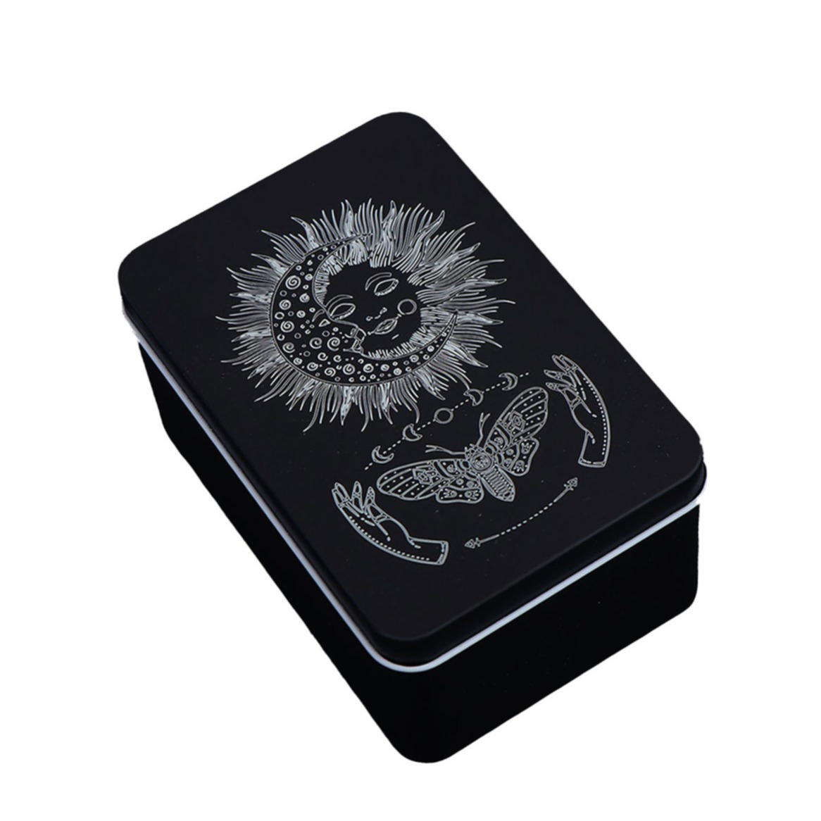 (125x85mm) Metall Spielkarten Box Tarot Karten Aufbewahrungs Dose Sammelkarten Schachtel Sonne und Mond Etui - Schwarz