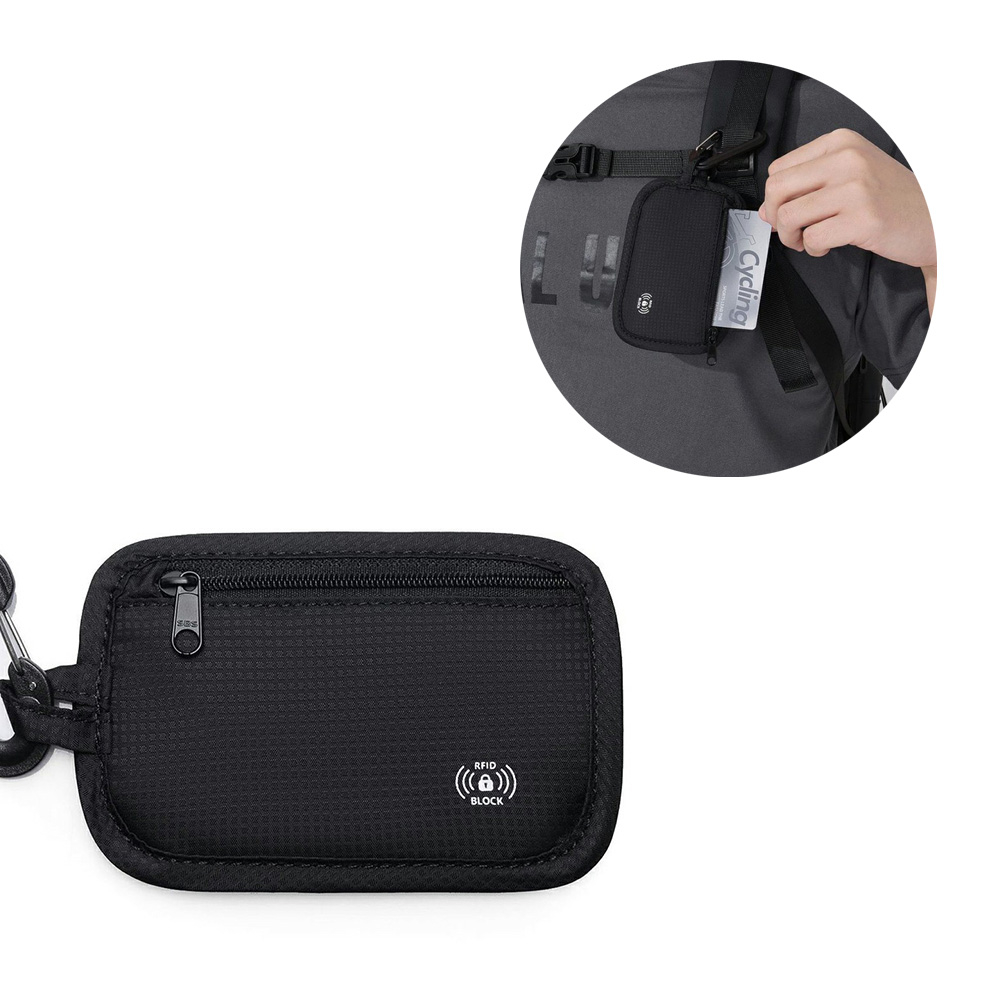 (125x85mm) Nylon Kreditkarten Etui Reise Gürteltasche Geldbörse mit Karabiner (RFID Schutz) - Schwarz