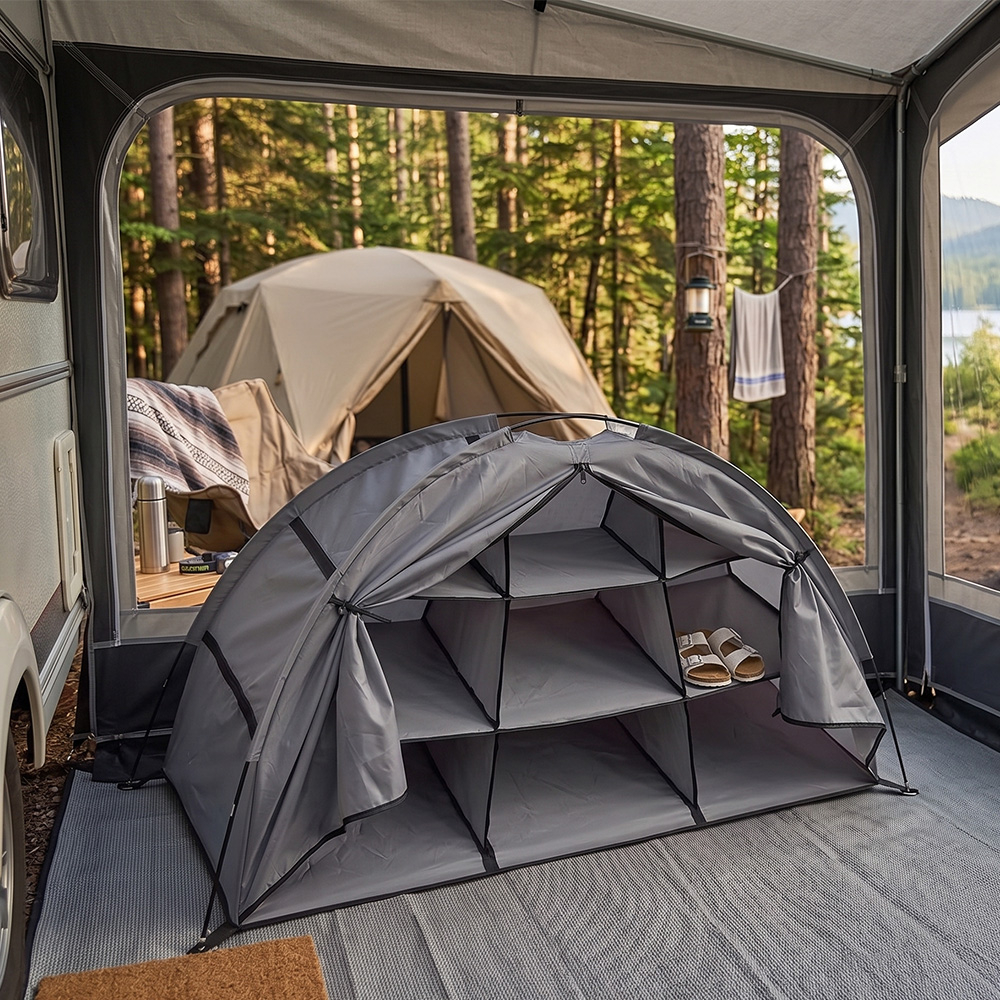 Mobiles Camping Regal Zelt mit Reissverschluss: