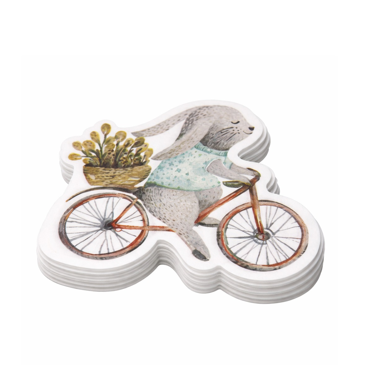 (12er Set) 16x27cm Einweg Servietten Oster Party Tisch Dekoration - Hase auf Fahrrad
