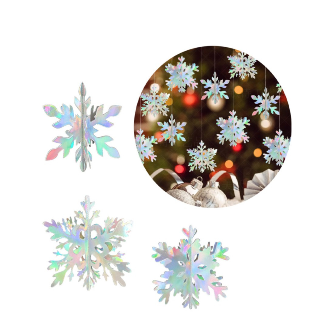 (12er Set) Holographische Schneeflocke 3D Eiskristall Party Deko Weihnachts Accessoire - Irisierend