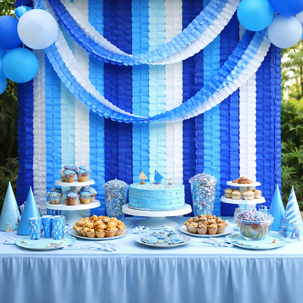 Mit dieser dekorativen Papier Girlande bringst du sommerliche Stimmung und frische Farben in deine Feier. Das elegante Kleeblatt Banner in Blau und Weiss sorgt für eine harmonische und zugleich auffällige Party Deko, die sich ideal für Gartenpartys, Geburtstage oder Events im Sommer eignet.