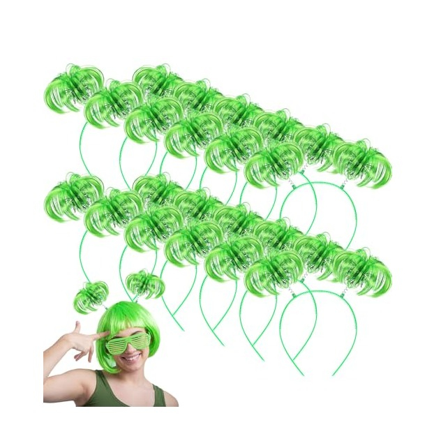 (12er Set) Wackel Pom Pom Haarreif Fasnachts Kostüm Zubehör Motto Party Accessoire Silvester Foto Requisite - Grün