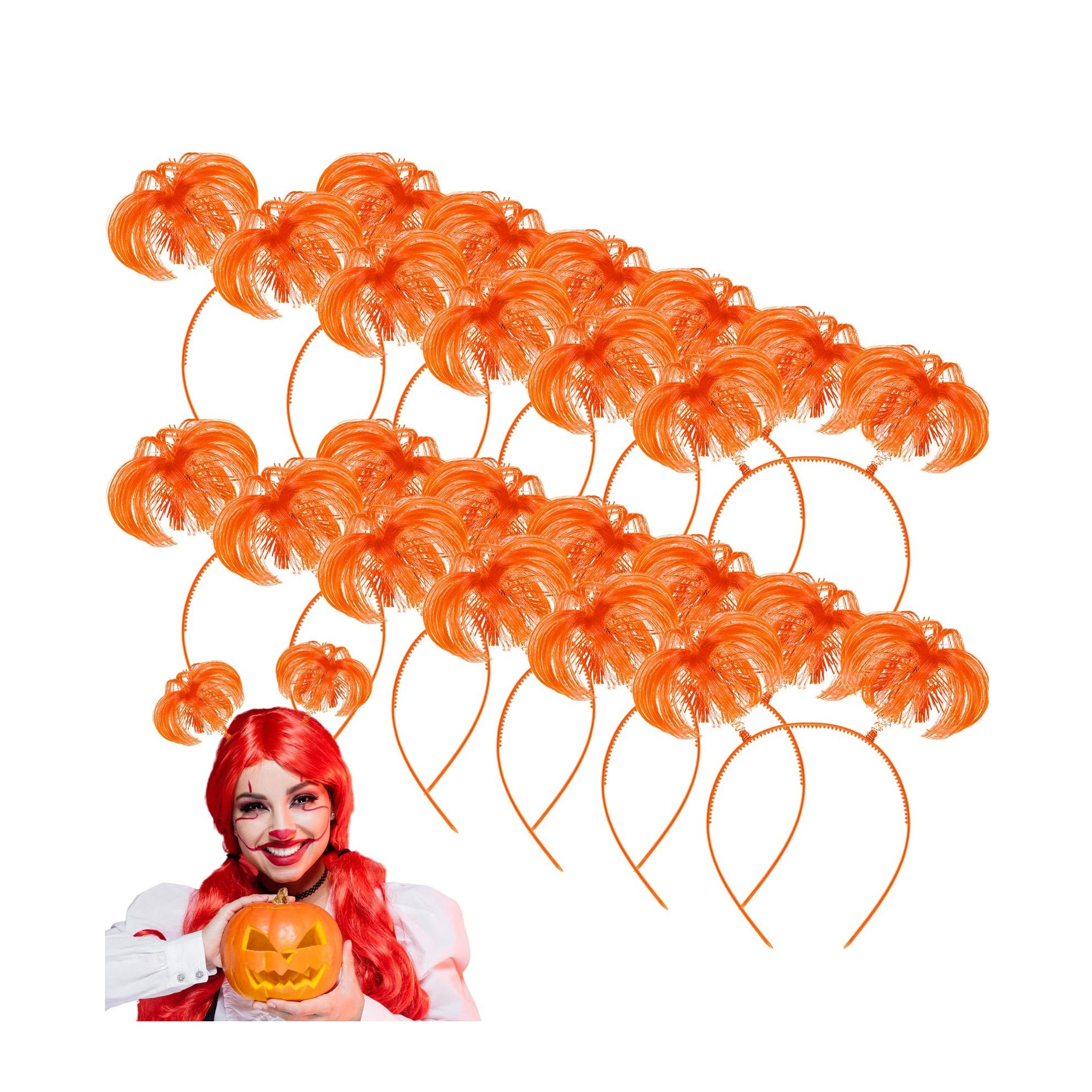 (12er Set) Wackel Pom Pom Haarreif Fasnachts Kostüm Zubehör Motto Party Accessoire Silvester Foto Requisite - Orange