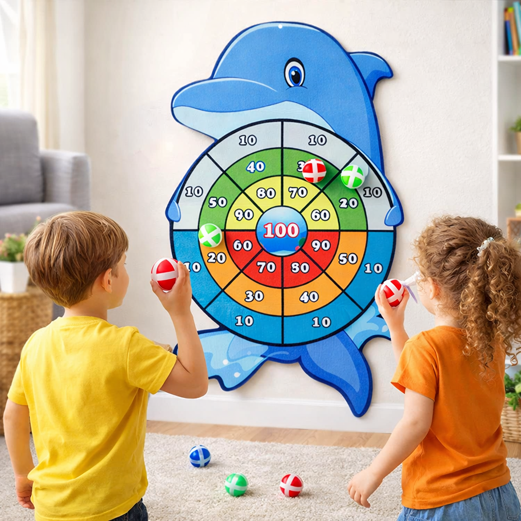 (13-tlg. Set) 75x45cm Kinder Filz Dart Spiel Klett Dartscheibe Wurfspiel inkl. Bälle - Delfin