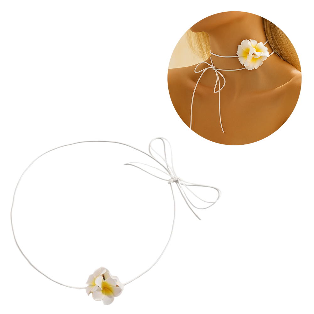 (130cm) Damen Halskette Fashion Sommer Modeschmuck Accessoire Choker mit Blume - Weiss / Gelb