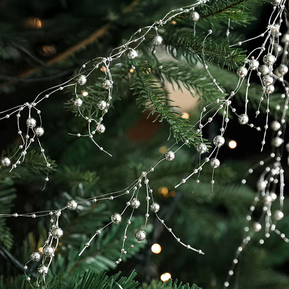 (130cm) Perlen Kette Weihnachts Deko Girlande Bastel Zubehör Christbaum Schmuck - Silber
