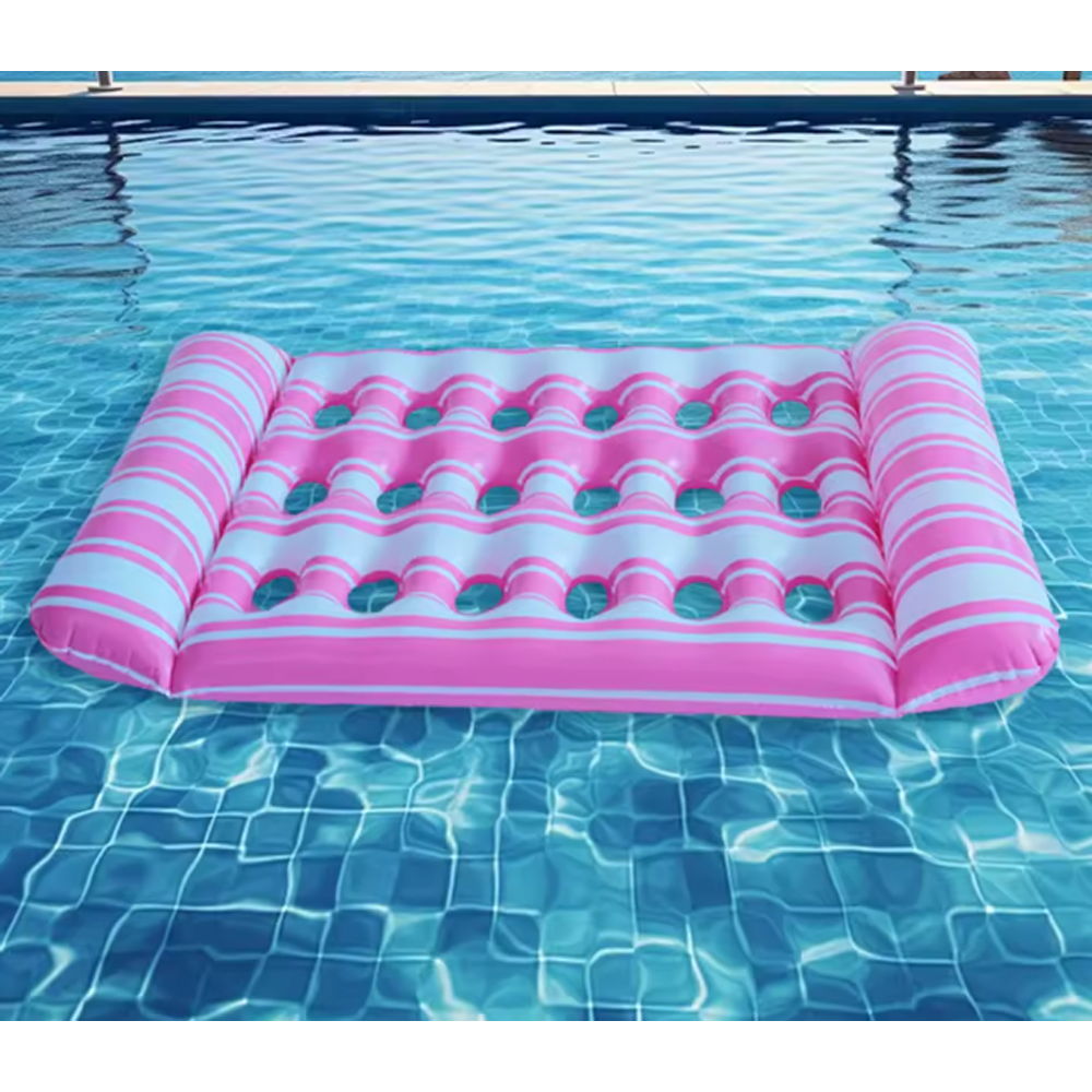 Diese Wasserhängematte verbindet entspanntes Treibenlassen mit angenehmem Liegegefühl. Die Luftmatratze ist Aufblasbar und in wenigen Minuten bereit für deinen nächsten Sommertag im Wasser. Das Gestreifte Design in Pink und Weiss sorgt für einen frischen, sommerlichen Look und macht die Badefläche zu einem echten Hingucker. Als praktische Badeinsel eignet sie sich ideal für Pool, See oder Strand. Dank des leichten Materials lässt sich die Matte nach dem Gebrauch einfach zusammenfalten und platzsparend verstauen. Perfekt für Ferien, Wochenendausflüge oder entspannte Stunden zuhause im Gartenpool.