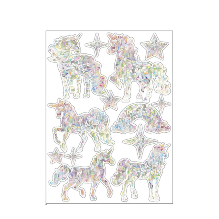 (13er Set) Holographische Fenster Folien Aufkleber Kinderzimmer Deko Prisma Suncatcher Sticker - Einhorn