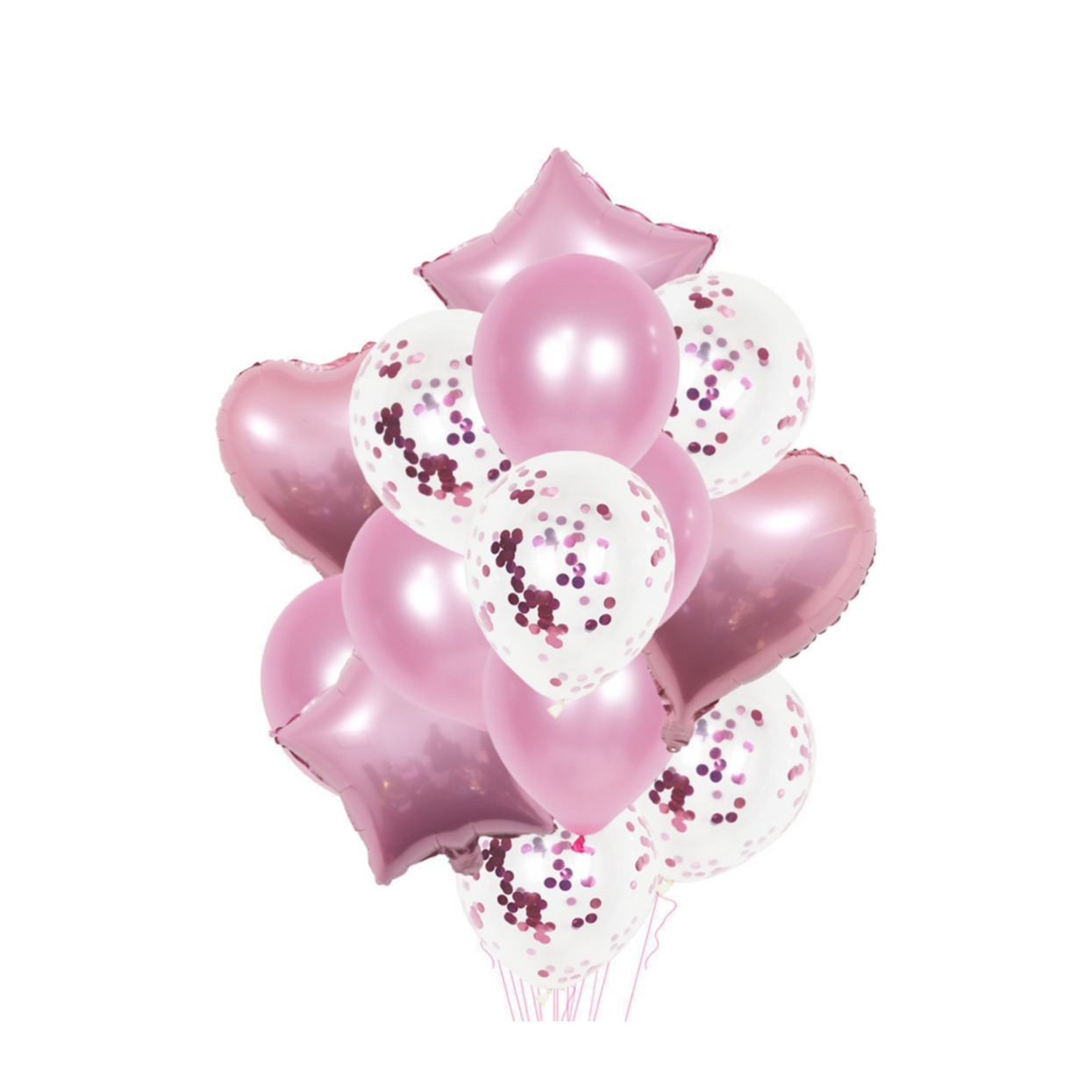 (15-tlg. Set) Party Ballons Latex- und Folienballons mit Konfetti - Rosa