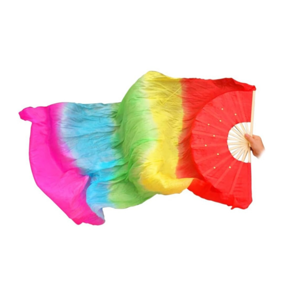 (150cm) Holz Bauchtanz Fächer Faltbarer Seiden Schleier Handfächer Tanz Party Zubehör - Regenbogen
