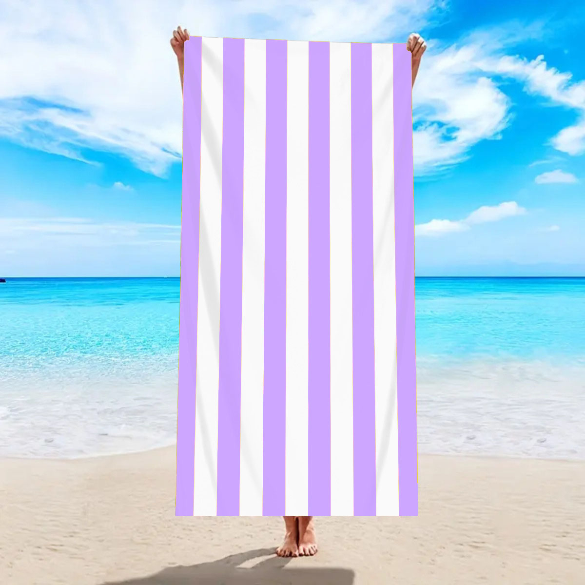 (150x75cm) Mikrofaser Badetuch Strandtuch Schnelltrocknendes Beach Tuch Gestreift - Lila / Weiss