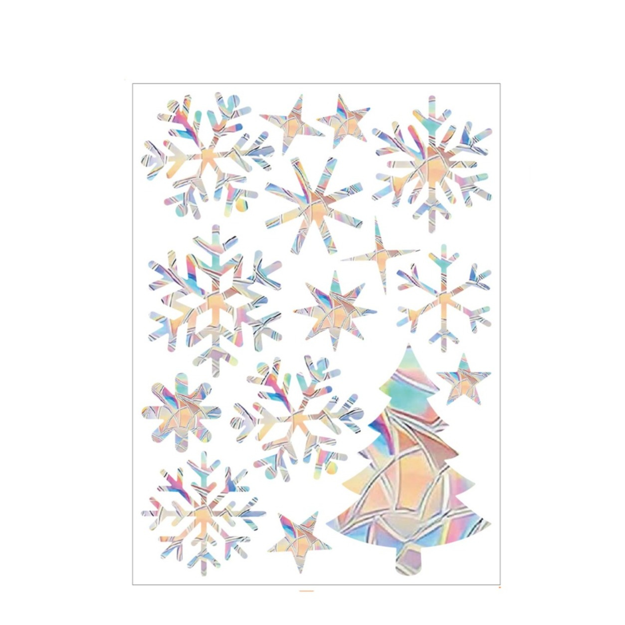 (15er Set) Holographische Weihnachts Fenster Folien Aufkleber Christmas Home Deko Prisma Suncatcher Sticker - Schneeflocke / Tannenbaum